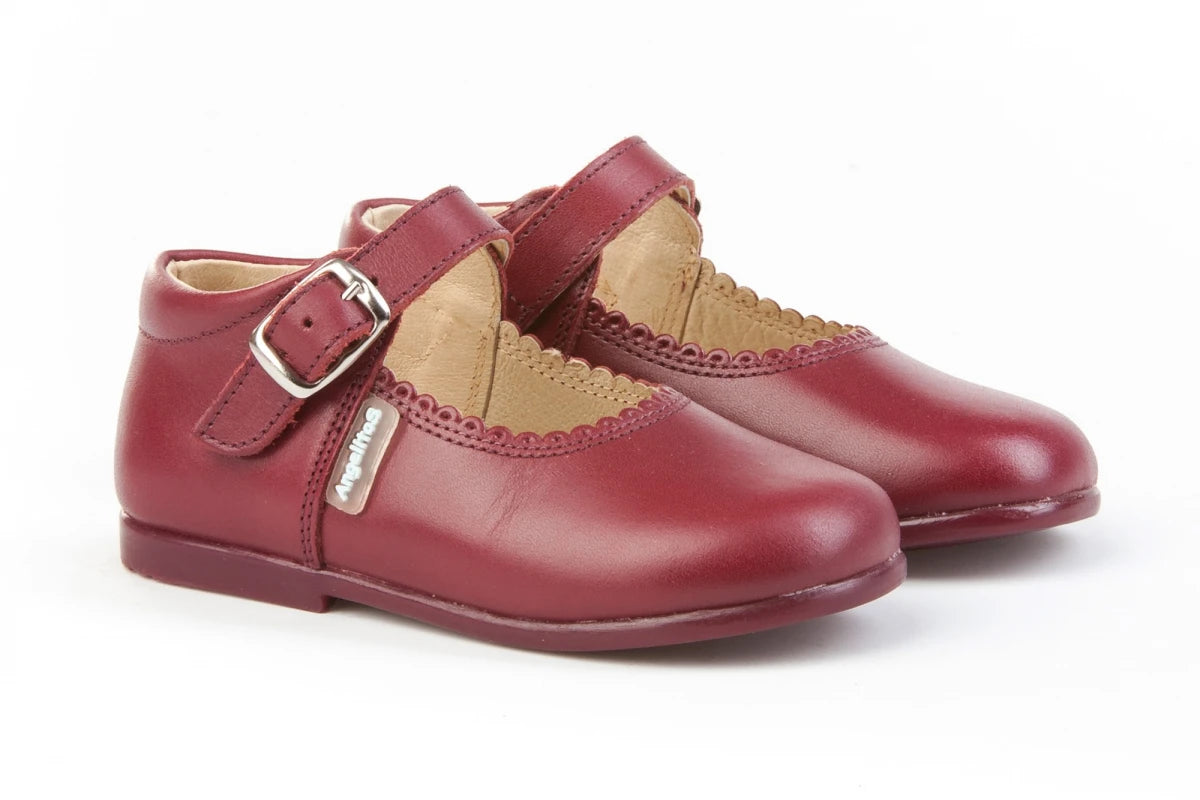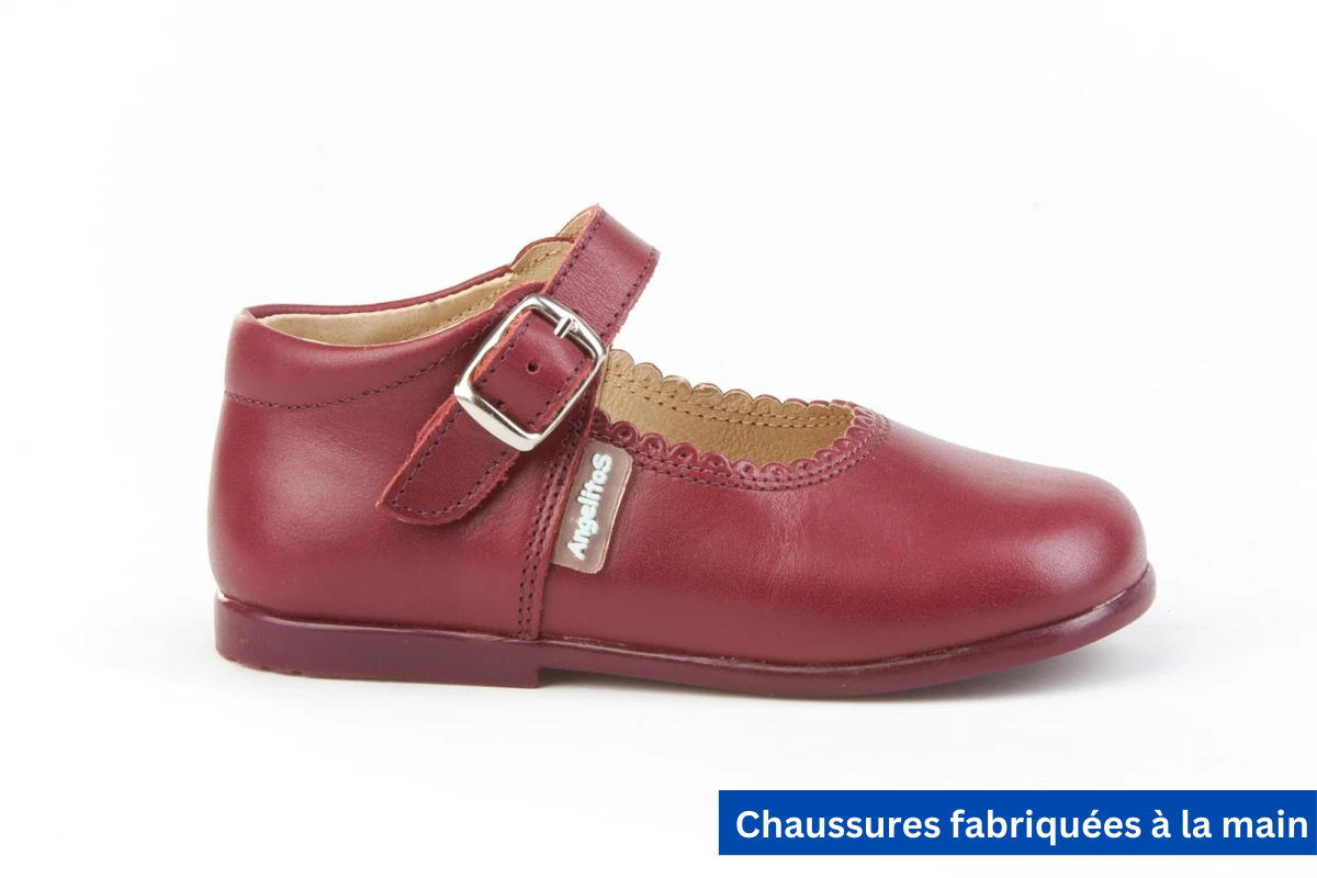 Les merceditas sont fabriquées en cuir de vachette avec un système de fermeture à boucle. L'intérieur est doublé de cuir naturel avec un renfort au niveau des orteils et du talon, une semelle avec un arc anatomique et une semelle en caoutchouc antidérapante.