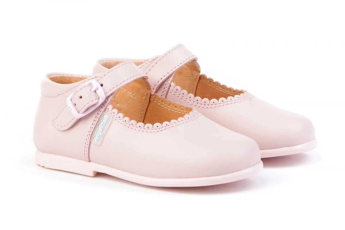 Les merceditas sont fabriquées en cuir de vachette avec un système de fermeture à boucle. L'intérieur est doublé de cuir naturel avec un renfort au niveau des orteils et du talon, une semelle avec un arc anatomique et une semelle en caoutchouc antidérapante.