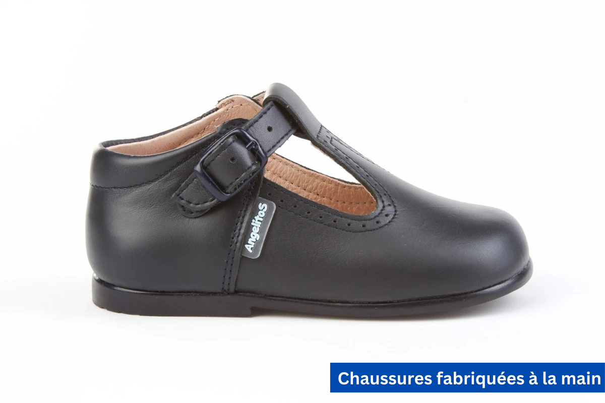 Chaussure type pepito fabriquée en cuir nappa de vache avec système de fermeture à boucle. L'intérieur est doublé de cuir naturel avec un renfort au niveau des orteils et du talon, une semelle avec un arc anatomique et une semelle en caoutchouc antidérapante.