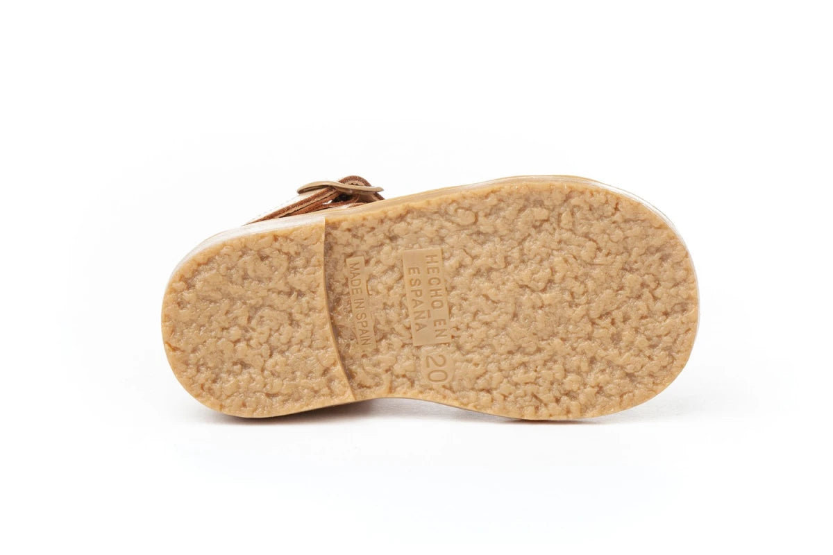 Sandales type méduses avec talon fermé et légèrement plus haut, fabriquées en cuir nappa de vache avec un système de fermeture à boucle. L'intérieur est doublé de cuir naturel avec un renfort au niveau du talon, une semelle avec un arc anatomique et une semelle en caoutchouc antidérapante.
